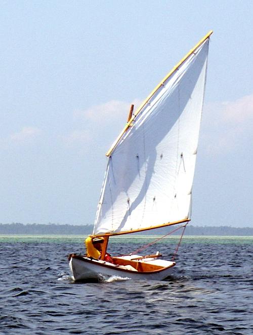 BACKGROUND...My first homebuilt boat, in 1981, was a Bolger Teal rigged with a 59 square foot sharpie sprit sail. Next boat was the Bolger Jinni with a 96 square foot main and small mizzen, both sharpie sprits. Later came Birdwatcher with a 126 square foot sharpie sprit. I've used the sharpie sprit on lots of my own designs thinking it about the best sailing cheap rig (although it has its disadvantages too). In this essay I'll pass along what I think I've learned about it.