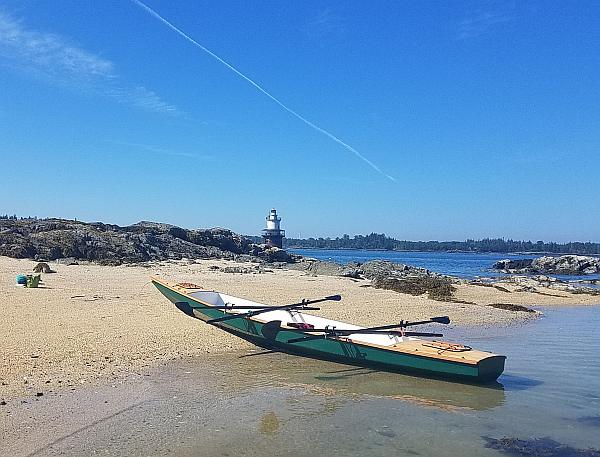 Left: Darrin Hallowell's RB42 on a Maine beach, I think. Set up to row two. A pretty picture!