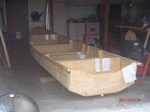 By the way, when I built my Toto I used the simple plywood strap method with no fasteners. Just carefully lay the ply panels over the straps which were well buttered with glue, weighed it all down with concrete blocks to provide pressure, and stayed away for a few days until I was sure the glue was totally set.