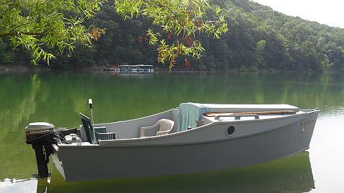 As for a planing power boat, the shaping gets simplified quite a bit. When planing the bow is well out of the water and could be any shape. In smooth water the best planing surface aft is bound to be very close to a flat plate although some would have a slight reverse hook in the aft bottom to trim the boat. I would think that in smooth water the old simple jonboat shape is the best. Not so in rough water. There I think the V is the best. It's easy to draw a V bottomed boat where the water flows smoothly from stem to stern crossing no seams at all. We've found that displacement boats made this way can be quite fast. They say that deep V power boats need a lot more power than the equal jonboat althought the ride will be a lot smoother.