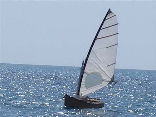 While I was sailing with Gerry, Bob's boat came out on the lake with four adult males and no sign of bogging down, showing that these fat pram shapes, very much like my Piccup Pram, can handle a lot of weight in the 13.5' length.