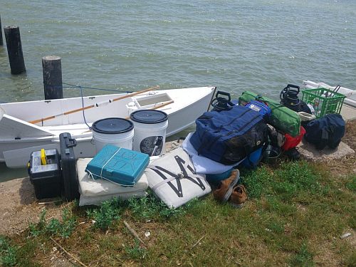 And the Vole in New York is Garth Battista's of www.breakawaybooks.com, printer of my book and Max's old outboard book and many other fine sports books. Beautiful job! Garth is using a small lug rig for sail, not the sharpie sprit sail shown on the plans, so I will continue to carry the design as a prototype boat. But he has used it extensively on his Bahamas trip towed behind his Cormorant. Sort of like having a compact car towed behind an RV.