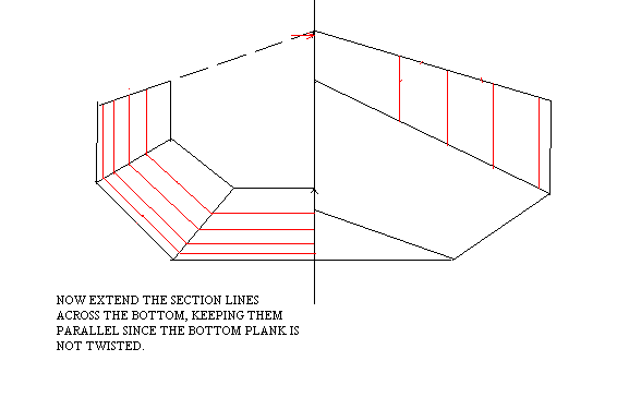 Then we can fill in the remaining section lines in the region of the twisted bow bilge planks, like this: