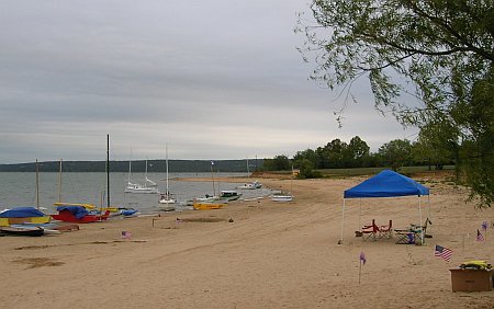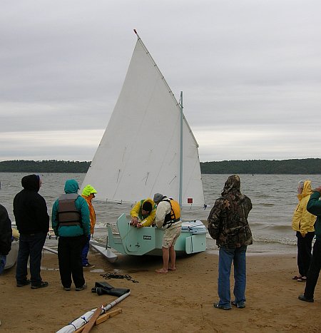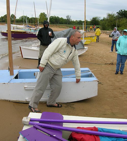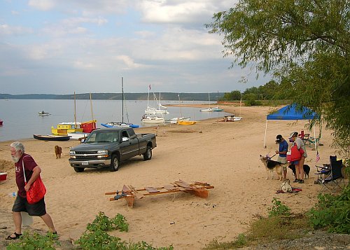 Standing near Chuck I saw the only Hapscut, built by John Goodman, sailing to shore with four grown men on board. John made a quick trip to California for his daughter's Marine Corps graduation and returned to OK on Sunday, but he left the Hapscut for the weekend for people to play with.