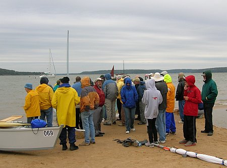 SUNDAY the weather was improving but we had to get back on the highway for the long drive home. But not before it was my turn to lecture .. about leeboards. Not sure how coherent I was at the time. Then back for the final load up and photo...