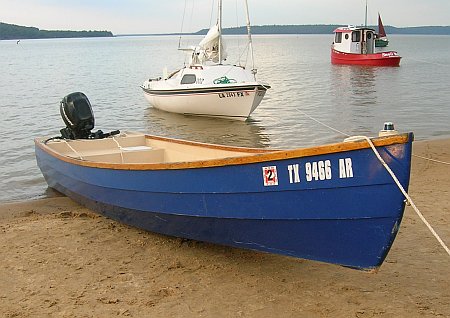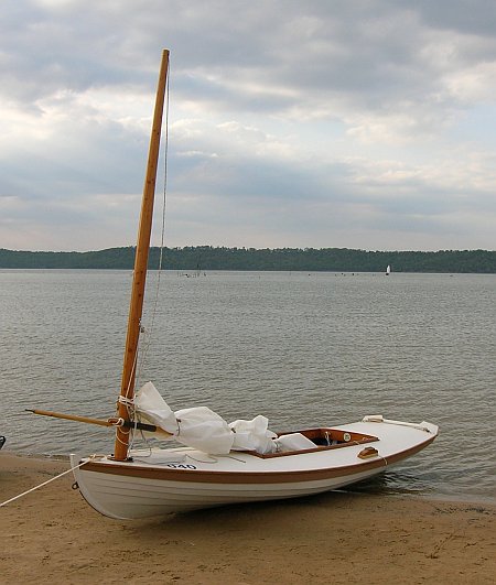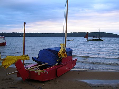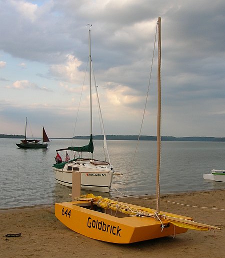 Then a trimaran with a story behind it. I think it is a CLC sharpie which proved too narrow and tall for any casual sailor. So it was fitted with a set of amas for the rest of us.