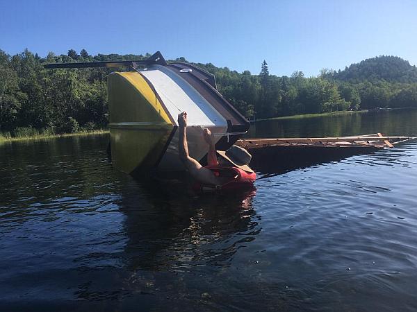 ...has been a key help to us boaters for a long time. In my case he has prototyped different boats going back to the AF3 long ago, and then he practices capsizing in the cold Canadian waters and writes about it. He did the OliveOyl prototype last year and has spent the summer in some serious testing of different rigs. So read on and learn. I think there will be two more episodes as later he does a junk rig capsize and then some junk rig testing with gps tracking.