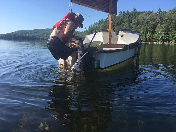 Greg Rinaca put a new 18 hp Nissan two cycle engine on his boat, Here is a photo of it: