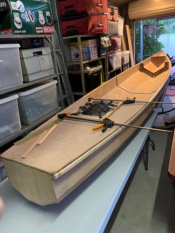 Left: Neil Shipley's Larsboat in the last stages of construction. Looks about ready to paint.
