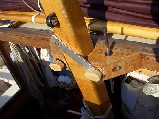 Left: The mast partner closure on Norm Wolfe's Normsboat.