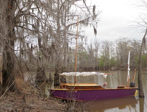 And the Vole in New York is Garth Battista's of www.breakawaybooks.com, printer of my book and Max's old outboard book and many other fine sports books. Beautiful job! Garth is using a small lug rig for sail, not the sharpie sprit sail shown on the plans, so I will continue to carry the design as a prototype boat. But he has used it extensively on his Bahamas trip towed behind his Cormorant. Sort of like having a compact car towed behind an RV.