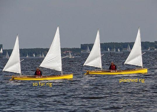 A brave soul has started a Robbsboat. He has a builder's blog at http://tomsrobbsboat.blogspot.com. (OOPS! He found a mistake in the side bevels of bulkhead5, says 20 degrees but should be 10 degrees.) This boat has been sailed and is being tested. He has found the sail area a bit much for his area and is putting in serious reef points.