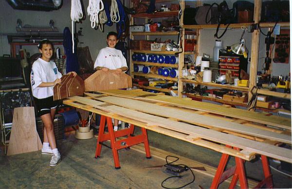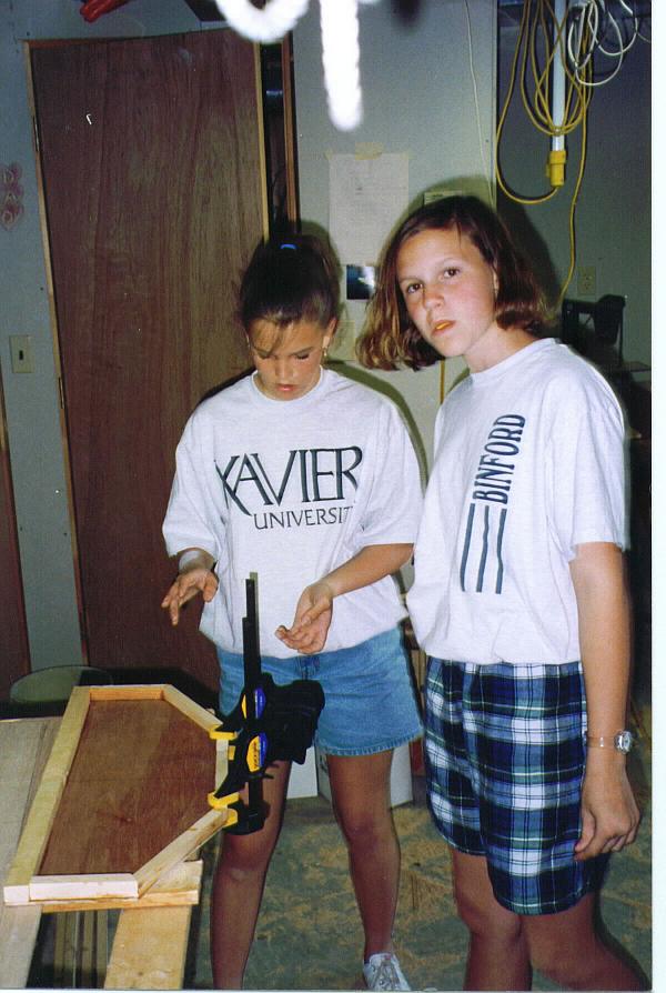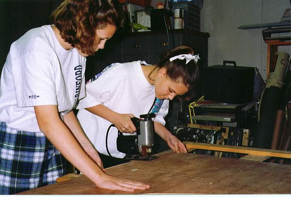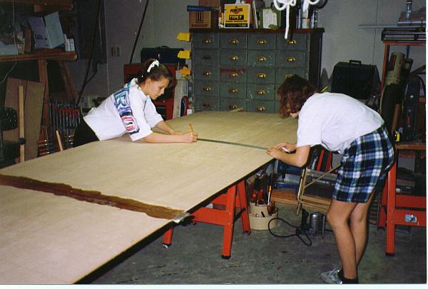 First, I showed the girls how to measure and lay out the offsets from the plans and they went to work on the scarfed sheets of Luan.