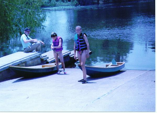... attended the very first Rend Lake Messabout way back when. And the second year he arrived towing his new Birdwatcher with a pair of Totos strapped to the Birdwatcher roof. That was in the early 1990's. The boats were built by his daughter and her friend, under Marc's watch, and he recently found these old photos of the projects. This was way before this website and before digital for most of us. But his story still stands very well...