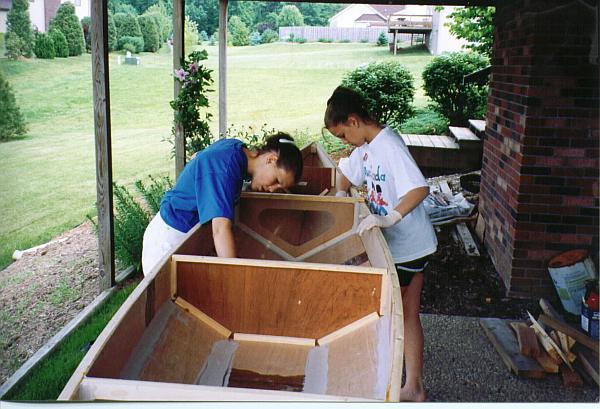 At the conclusion of her sixth grade I ask her if she and her friend, Hadley, would like to build their own canoes. They both jumped at the idea! It was about three weeks before our next Small Boat Messabout and they wanted to build the boats to take along. We chose Jim Michalak�s Toto and I emphasized to the girls that I would only supervise their work but they would do all the building themselves. They enthusiastically agreed.