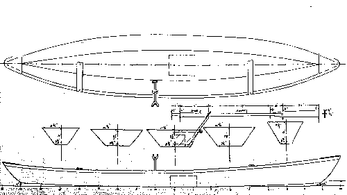 The big departure I've made from Culler's work is that I've used "instant" plywood construction, something that Culler didn't like at all. He had a long lifetime of experience with traditional methods and tools and materials by the time he built Otter and Burke says he built her in a one week vacation, with lapstrake sides, cross planked bottom, and all the gingerbread. In the photos it is a true work of functional folk art. Batto won't be in the same league as a work of art, but it should actually be a better boat by almost all other criteria. Built taped seam style with no jigs from 3 sheets of 1/4" plywood, Batto will be a 40 hour project for most any man and will be lighter and faster than the original.