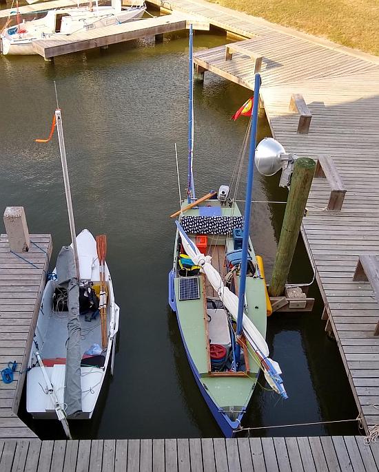 And the Vole in New York is Garth Battista's of www.breakawaybooks.com, printer of my book and Max's old outboard book and many other fine sports books. Beautiful job! Garth is using a small lug rig for sail, not the sharpie sprit sail shown on the plans, so I will continue to carry the design as a prototype boat. But he has used it extensively on his Bahamas trip towed behind his Cormorant. Sort of like having a compact car towed behind an RV.