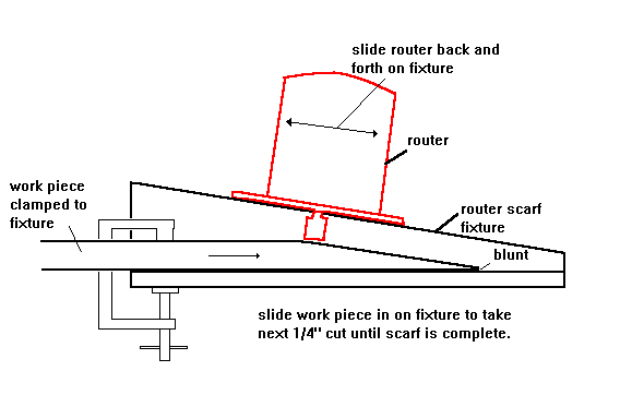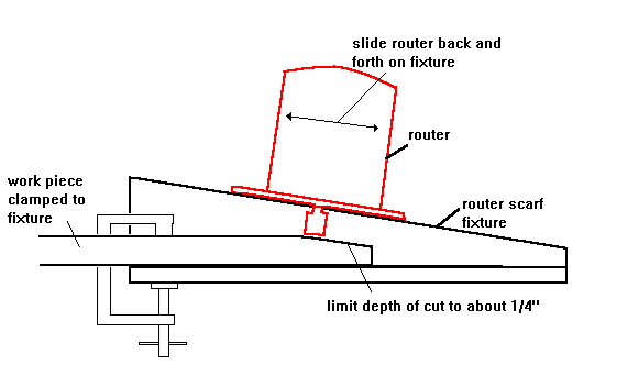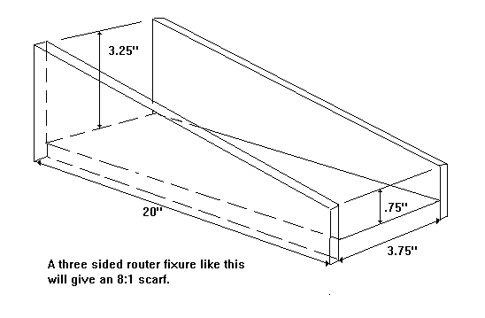 When I built a Birdwatcher a while back I needed to join a lot of lumber since the boat was 24' long and the mast longer. I built a simple fixture for my router for cutting the scarfs. It looks like this: