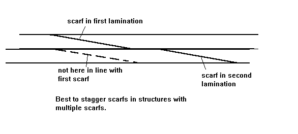 There will be times when you can't buy lumber as long as you will need. This will be especially true for masts, but it can also be true for elements like wales and chine logs. At my lumber yard many boards max out at 16' long, although some such as 2 x 10's can still be got in 20' lengths (if you can lift them). The standard solution to the length problem with lumber is to scarf it together.