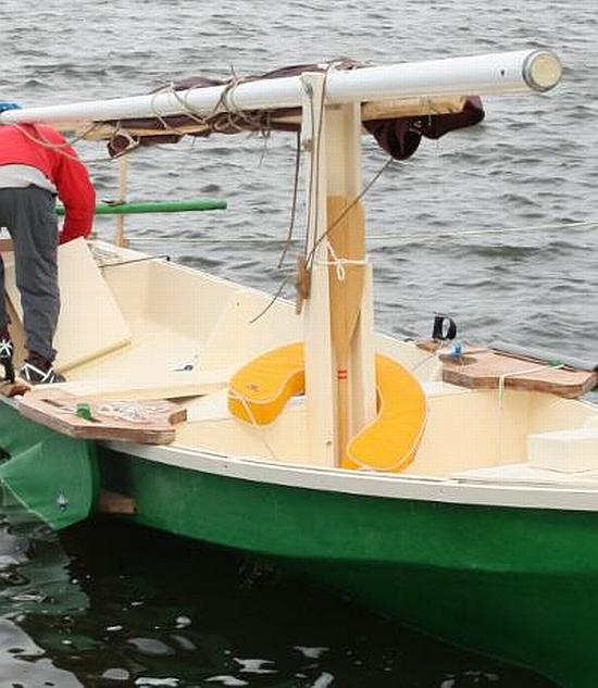 A brave soul has started a Robbsboat. He has a builder's blog at http://tomsrobbsboat.blogspot.com. (OOPS! He found a mistake in the side bevels of bulkhead5, says 20 degrees but should be 10 degrees.) This boat has been sailed and is being tested. He has found the sail area a bit much for his area and is putting in serious reef points.