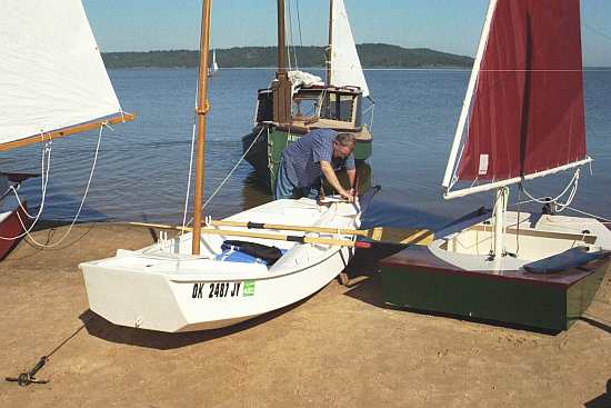 Here he is doing the last fussing. Behind him is Richard Spelling's veteran Bolger Navigator. To the right is Monies' new Welsford PDR.