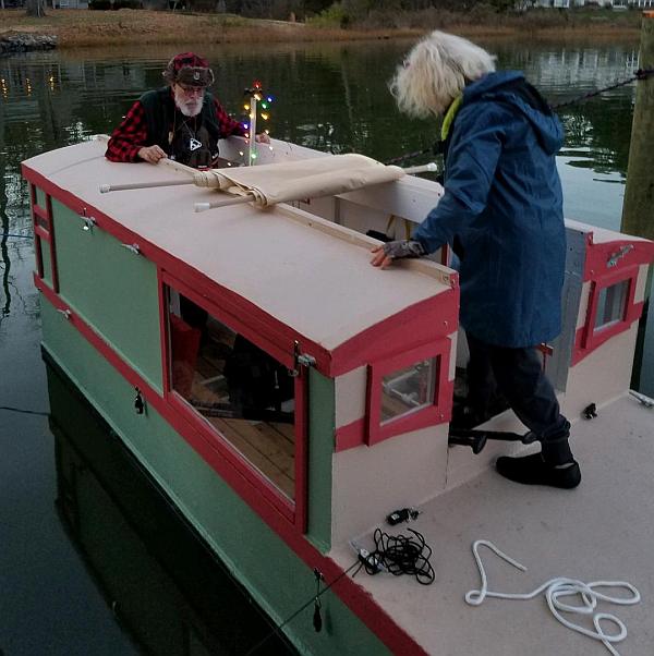 And the Vole in New York is Garth Battista's of www.breakawaybooks.com, printer of my book and Max's old outboard book and many other fine sports books. Beautiful job! Garth is using a small lug rig for sail, not the sharpie sprit sail shown on the plans, so I will continue to carry the design as a prototype boat. But he has used it extensively on his Bahamas trip towed behind his Cormorant. Sort of like having a compact car towed behind an RV.