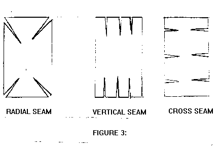 You won't get the desired shape without doing some seaming to turn it from a flat panel into a three dimensional sail. The seams might be something as in Figure 3. Imagine the wedged gaps sewn shut and you can imagine the flat pattern taking on a 3D shape. In general that extra material that forms the draft in the center of the sail must be removed around the edges. Because the sail has a 1' draft at its center, the actual distance across the cloth (arc length) in the middle must be about 10.2'. The difference amounts to about 2.4" - Not a big number but if not allowed for, you won't get 1' draft in the center with a stiff cloth and rigid structure. Or with sailcloth in a roll the sailmaker would vary the widths of the seams (broadseaming) to produce the same effect. There are programs available on the internet which calculate the seams in cases like that. The crosscut sail is considered to be the best. Usually the broadseaming is almost all done on the luff, none on the leech. By doing that the sail will take on an airfoil shape with the maximum draft perhaps 30% aft of the leading edge like an airplane's wing.