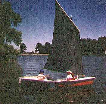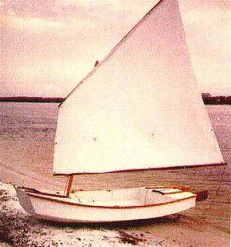 I still have the original Piccup, now about 10 years old. For what it is supposed to do I still haven't thought of anything better, although I've tinkered with the design a time or two. The photo above shows the original at Pensacola's Big Lagoon. The boat is not white anymore. It's camouflage green and brown, much easier to apply and take care of but a lot less yachty. And the sail rig is now larger and of polytarp. But that's it. The actual hull structure is unchanged after ten years. I might add that the hull is built of exterior plywood and stuck together with glass tapes set in polyester resin. It's stored indoors.