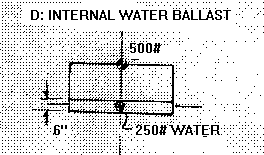 Example E has a 250 pound V shaped ballast tank on its bottom. Whether it might be called internal ballast or external ballast is in the eye of the beholder. I included it because I thought it might represent some water ballasted trailer sailers you can buy.