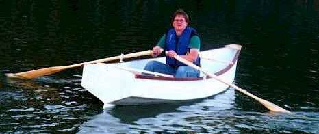 I like Bruce's approach. He built the boat from materials available at his local stores. (That means polyester resin instead of epoxy. That might bring of a storm of comments but my original Roar, built in 1990, used polyester resin and still sees lots of use and shows no sign of giving up. My Piccup Pram is a year older and built the same way with the same results. No doubt epoxy is better but no doubt polyester has been successful for me.) He made his own oars per my instructions while waiting for the stores to open. Be sure to stop at Bruces wonderful page.