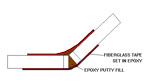 ...is to do a seam all at once if possible. That would mean putting down the fillet and then the tape straight into it before the fillet sets. If more than one layer of glass is involved you put the extra layers right onto the first ones before they set. This way you avoid all the nasty sanding you face if you let a layer cure first. (Any cured resin system must be sanded before applying another layer, or paint.) It saves a tremendous amount of work. And you can be sure the whole thing is bonded together. So when you start you must have all you stuff together and ready to go.