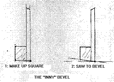 Innys are a little easier to picture. You could make all the edges square to the basic dimensions and then run them through a saw set to the proper bevel to shave off the extra material. I used to do them that way and still do on occasion. The problem I have is that I use a bandsaw for this which doesn't care to cut straight. And a large bulkhead is a beast to run through the saw all at once. You could try a saber saw or circular saw set to the proper bevel if you think you are good enough at it to keep the blade just kissing the edge marked "Dimensions to Here". I' not.