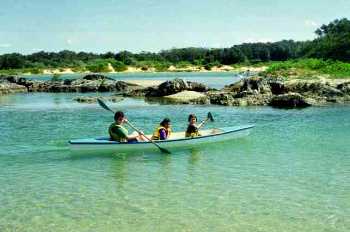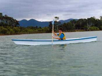 And here are some photos from New South Wales from Ashley Cook. I'm very glad these boats are getting around. You can see these are best as solo boats but have the room and capacity to take some passengers in good conditions. Also you can tell that kids really take well to this sort of boat. They are easily understood in one glance. Still, you have to take any boat seriously. If you fall out of or capsize a boat like this you well need special training and gear to get going again in deep water. If built with the end air boxes the boat will have plenty of buoyancy but probably won't be stable enough for you to get back in. I think the only way to do the job is with a bailing scoop and a way to lash the paddle across the boat with a flotation cushion attached to one end to stabilize the boat in roll. You have to do all this as you swim around. My own appoach is to use these close to shore in warm water!