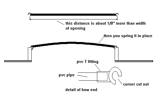 Marc Smith came to our messabout with a Birdwatcher with a fabric cover over the slot. He had some neat bows that he had made of small diameter PVC pipe like this: