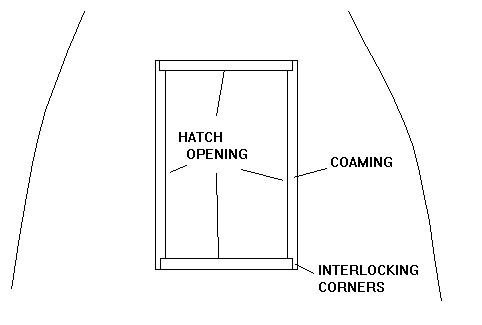 I've used very simple hatches on my boats, like Piccup. A simple coaming is made around the opening as shown in the figure. The ends are interlocked so that hopefully there will be no leaks.