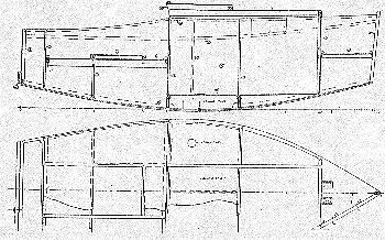 I thought that in most ways Micro's strength and weakness was in its keel - about 450 pounds of lead casting permanently fixed for a draft of about 18". The strength is that Micro is very stable and selfrighteous. The weakness is in the difficulties in launching and using a boat with that much draft, and in making the casting. For all the griping about making the casting, I never heard of anyone trying one with internal ballast, or using a leeboard on Micro, both mods would be quite possible. So I tried both on Musicbox3. The ballast shown on the plans is in the form of a water box which holds about 500 pounds of water. That could be replaced with lead or steel bolted to the bottom of the bulkheads if you didn't mind trailering the ballast - it would give more room inside, too. So Musicbox3 should float off the trailer in just 5" of water, and float in 7.5" with the ballast tank flooded, and about 9" with two full sized adults with their junk.