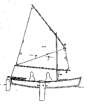 The sail rig is a balanced lug which is easy to build and stow. I recommend that my customers sew their own sails either from common polytarp (as Garth did in the boat shown above) or real Dacron sailcloth. The plans show instructions for sewing in real sailcloth. You need a sewing machine that sews zigzag stitches and cheap home machines are usually good at that. I don't claim to be the world's best sailmaker but it is not majic. I can do it and so can you. The clothes you are wearing are ten times more complex than a small sail. There are a few rules to follow and I give an essay on that with each set of sailboat plans. In fact I suggest you sew your sails before you build your hull. Both sail and hull require about the same work space. Sew the sail first, roll it up, stuff it in a closet, and now your workspace is ready for your hull. Getting the sail done can get you over a big mental hurdle.