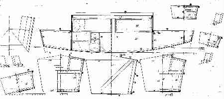 Jewelbox uses self erecting construction throughout. She needs 2 sheets of 3/16" Plexiglass, 7 sheets of 1/4" plywood, and 9 sheets of 1/2" plywood. It's all simple glue and nail construction with no jigs or lofting. Plans are $35.