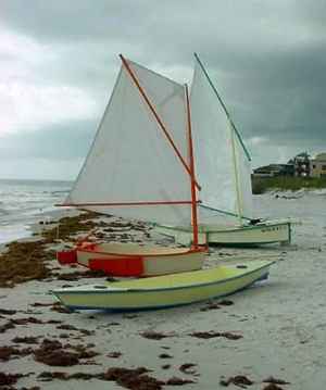 One question I have to ask myself is if a bit of added ballast will make these designs self righting. Not with the crew inside because that can be a very difficult situation to scope out in every way, but with the empty boat righting itself after the capsize and the crew is swimming. Then the boat self rights by itself before waves have a chance to flood into the slot. The crew doesn't need to swim except to get to the rudder toe slots and back into the boat. Then it is bail time. From what I have seen the amount of ballast needed might not be much, maybe less that 50 pounds. Maybe less if the weight is mounted on the tip of the leeboard. But you can't always plan on the leeboard being down and the tip ballast might make the board very hard to pull up. You can of course see a great danger in such a boat in that it might sail off without you very quickly so on second thought it isn't such a good idea. Then again, that situation is no different from the present where you must have the sheet loose and have a good grip on the boat when it pops upright.