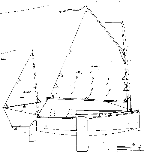 As for the sail rig, I used a gaff sail to get good area from a short 17' mast which pivots on a tabernacle and stows within the length of the trailered boat. I added a small mizzen for balance and provide steadying at anchor or during sail changes.