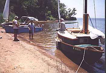 Mayfly: The prototype of the original 14' Mayfly is finished in New York state. Here it is on its first sail (Long Island Sound).