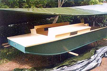 A barn in rural Florida giving birth to the first Shanteuse, this one stretched from 16' to 24'. The builder said it was easy to turn the hull but it looks like his name is John Deere.