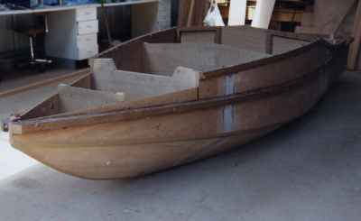 IMB takes two sheets of 1/2" plywood, eight sheets of 1/4" plywood and one sheet of 3/16" Plexiglass. Taped seam construction using no jigs or lofting.