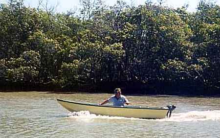 Actually the size and material list for Philsboat are about the same as that of Scram Pram. So which boat would be better? Take Philsboat if you are a pointy bow guy. It should be better in really rough water. On the other hand Scram is wider and roomier. It has a flat step through bow that will splash and spit in rough water but makes beaching a very nice experience.