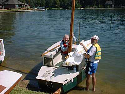 The sail rig uses a balanced lug, 113 square feet and the same as that of a Bolger Windsprint which should be available from Harold Payson.