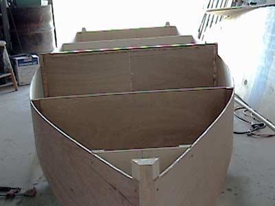 Ladybug uses taped seam construction. Six sheets of 1/4" plywood, on sheet of 3/8" plywood and two sheets of 1/2' plywood.