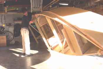 The photo above is of Bob Smithson's Larsboat. He customized the decking a bit. I think he also built the boat of 1/8" ply to save weight. I've forgotten what his boat weighed but he did say it was sufficiently rigid for him.