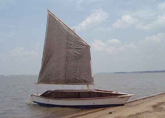 Now let's say you also had an old very modified Bolger Jinni which in its final days had this lug rig which was back in your polytarp sail testing days, this one being the largest you could get out of a 12' x 16' tarp.