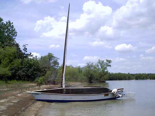 I get letters all the time asking if a certain sailboat can be rigged in a different way. For that I present each year the Sail Area Math essay but the letters keep coming. Here is a real world application of the Sail Area Math essay.Let's say you had a Bolger Birdwatcher since 1989 with its sharpie sprit rig set on a 24' mast. You found from the first day that the mast is the largest that a fellow can step by himself and even then only in good conditions when the boat is solid on a beach or on its trailer. Recently reality has convinced you to put an outboard motor on this boat such that sailing in light winds isn't a big deal. In fact the original Birdwatcher rig was not that great in light winds anyway.