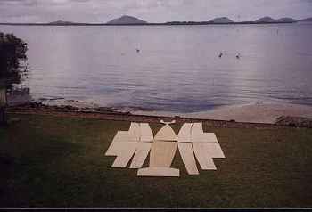 Am upside down plywood box I'm told is the true 16' Shanteuse (at last) is going together in Tennessee.